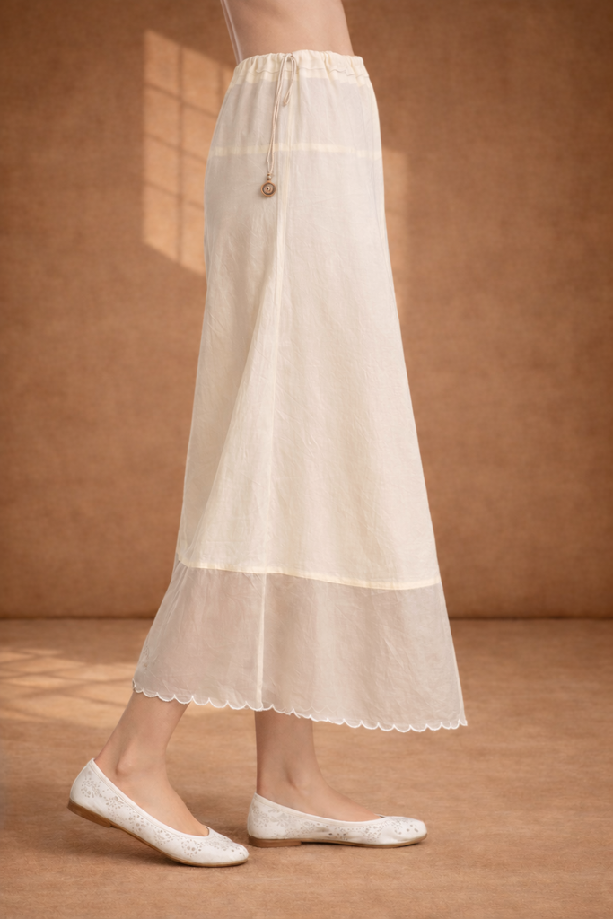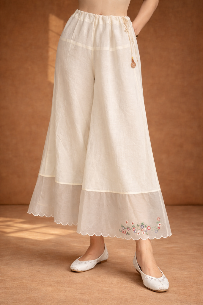 IVORY SILK CHANDERI PALAZO WITH SHEER ORGANZA BORDER