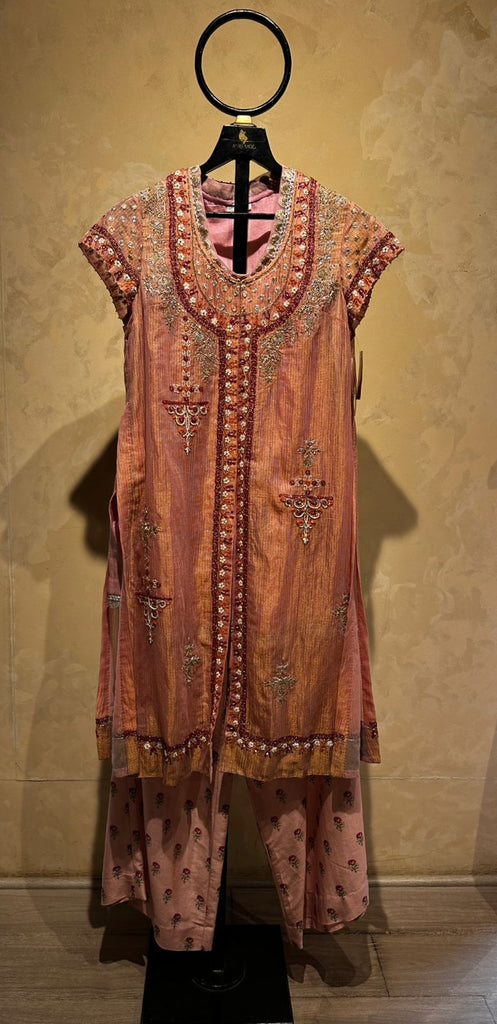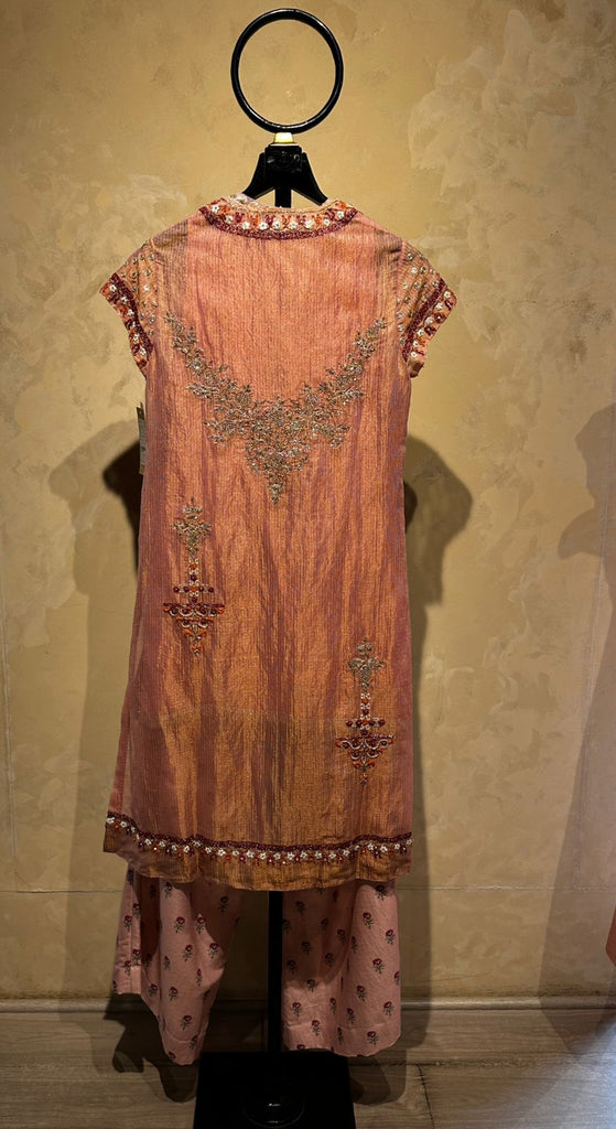 ONION PINK KOTA TISSUE EMBROIDERED JACKET WITH PINK MAHESHWARI TISSUE INNER AND PINK PRINTED PALAZO (SE-02A) (3PCS)