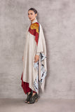ASH GREY SILK DUPION EMBROIDERED & BIRD PRINTED DRAPED TUNIC (AJP-05)