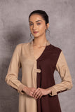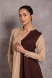 BEIGE & BROWN WOOLEN HIGH-LOW JACKET (WLN-04A)
