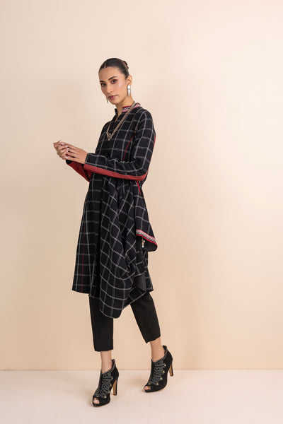 BLACK HANDWOVEN COTTON ASSYMETRICAL JACKET (1 PC)