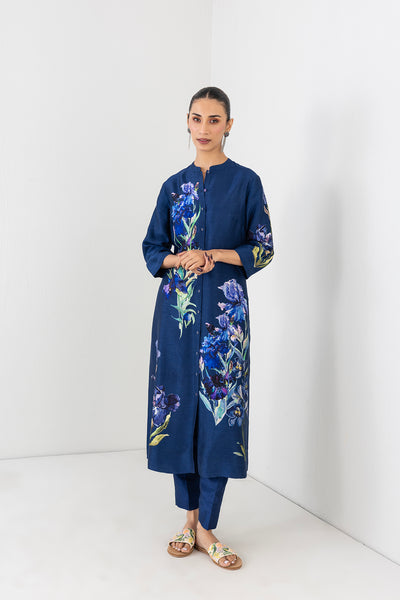 BLUE LAGOON DUPION FLORAL BUTA PRINTED TUNIC (1 PC)