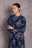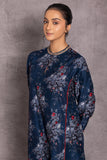 BLUE VISCOSE DUPION EMBROIDERED & BIRD NEST FLORAL PRINTED PIN-TUCKS DETAILED TUNIC