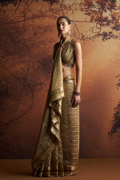 BROWN TISSUE DRILL SONA RUPA CRUSH SAREE SET (CHHAVI-21A)