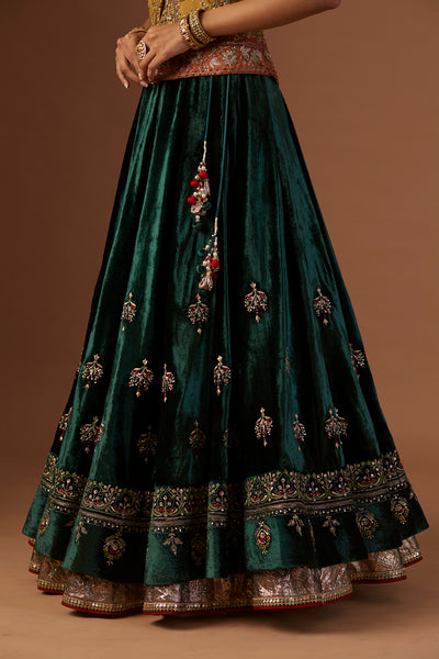 EMERALD GREEN SILK VELVET EMBROIDERED LEHENGA (1 PC)