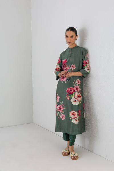 EUCALYPTUS SILK CHANDERI HIBISCUS PRINTED TUNIC (1 PC)