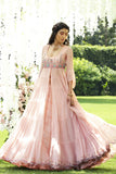BLUSH CHIFFON EMBROIDERED TIERED ANARKALI PAIRED WITH MARBLE PRINTED ORGANZA SKIRT & TULLE EMBROIDERED DUPATTA (3 PCS)