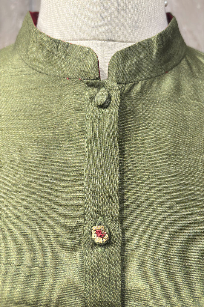 GREEN DUPION PRINTED TUNIC (AJP-19B) (1 PC)