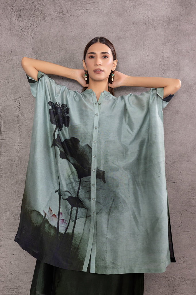 AQUA SILK CHANDERI PRINTED KAFTAN WITH INNER