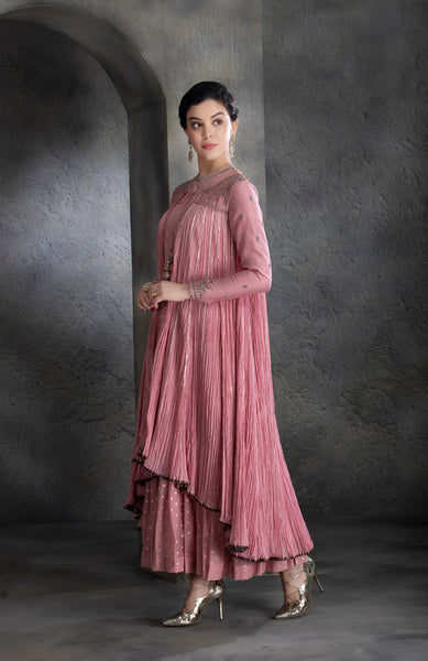 DUSTY PINK CHANDERI & COTTON FLORAL EMBROIDERED ANGRAKHA SET (BV-04)